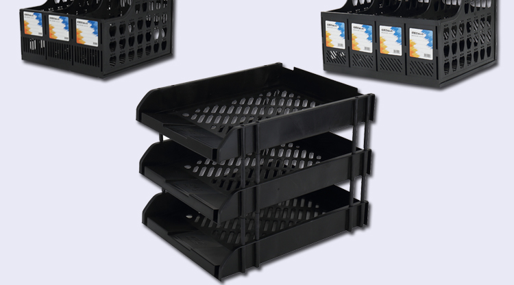 可得優(KW-triO)三連四連ファイルバスケット3階ファイルホルダーファイルフレーム資料ファイル棚ファイルトレイプラスチック雑誌欄SL-03三連ファイルボックス-灰色