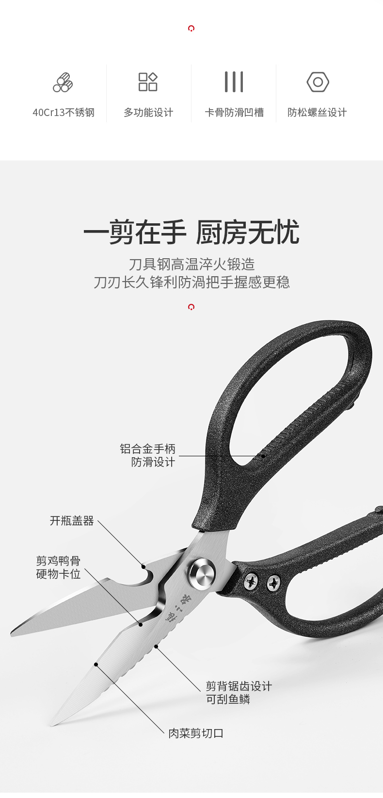 張小泉はさみ台所剪鬼舞多機能台所はさみ4クロムステンレス強力剪鶏鴨骨エビ線硬物はさみ【写真価格ブランドオファー】-