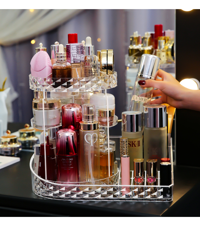 薇爱化妆品收纳盒360度回転大容量透明化妆盒梳妆台桌面スキンケア用品口紅置物架アップグレードダイヤモンド纹回転款