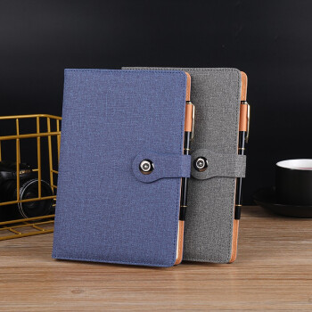 忠简文具 厚くビジネスノートブック带扣a5ノート子シンプル布纹会议记录本质感细腻支持定制可印会社logo A5蓝色(单本)