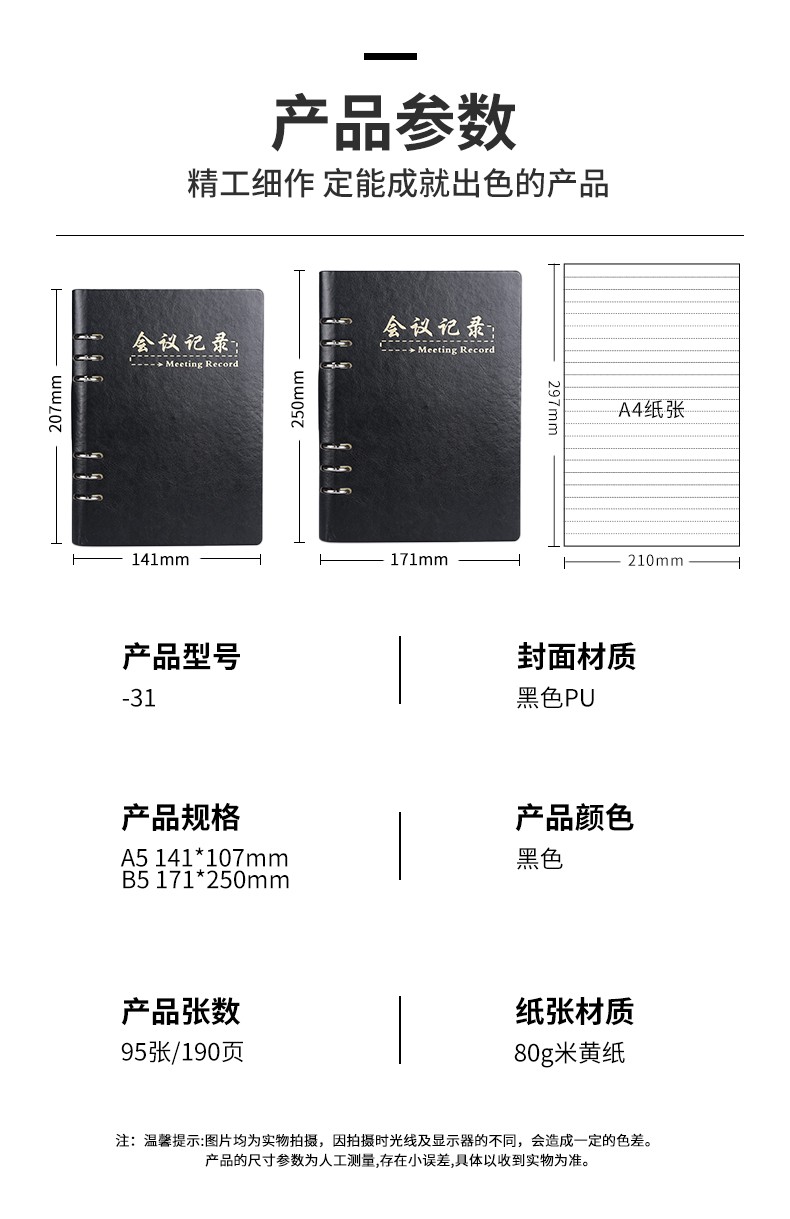 【简勋(JIANXUN)ハードサイド会议记录ルーズリーフ本】简勋(JIANXUN)会议记录本ルーズリーフノートビジネス培训シンプル大气a5本子文具硬皮オフィス工作可定制会社logo B5黑色(单本)【